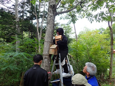 今回の森林教室は、「守って育てる天然の苗」(背くらべ)、「来てくれた?来てくれるかな」(野鳥の巣箱確認と設置」、「大きくなあれ」(タネから育てた苗木植栽・保護管設置・背くらべ記録)、「枯草コンポスト」(堆肥と虫のすみかづくり)、「森の音・風を感じよう」(森のブランコ体験・営巣巣箱などの観察)を実施しました。