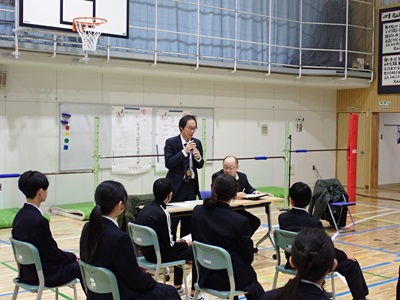 札幌市立義務教育学校定山渓学園の5~9年生(小学5~中学3年)が1年間を通して取り組んでいる環境学習、森林保全、自然とのふれあい・観察等の活動結果を紹介する「令和7年度森づくり活動発表会」を12月18日(木曜日)に定山渓学園で開催しました。開会にあたり主催者代表の挨拶として北海道森林管理局武田森林整備部長から「定山渓の森林は、札幌市に良質な水を育んでいる水源の森を活動地として、平成22年から森林の大切さ、動植物と森林の関係などについて観察や調査、森林づくり活動など定山渓学園の取組として定着させてほしい。」と挨拶がありました。