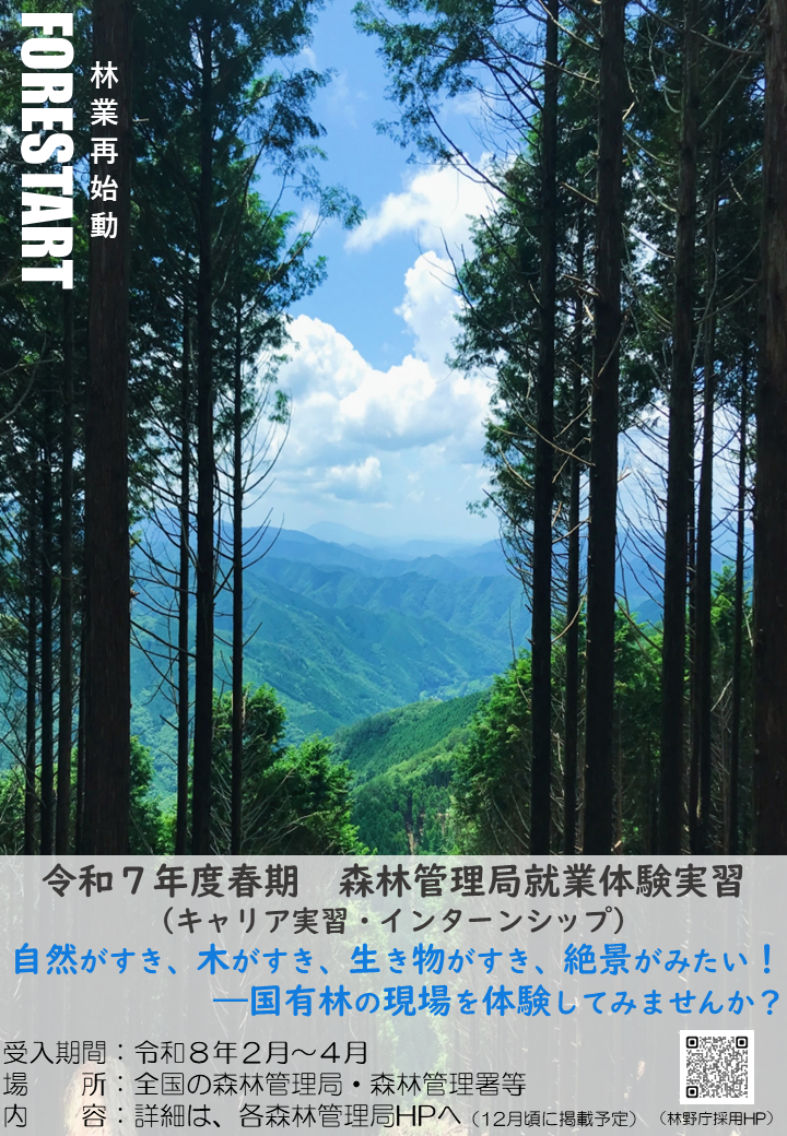 林野庁・森林管理局の業務内容や職場の雰囲気を知ることができる貴重な機会ですので、ぜひご応募ください。