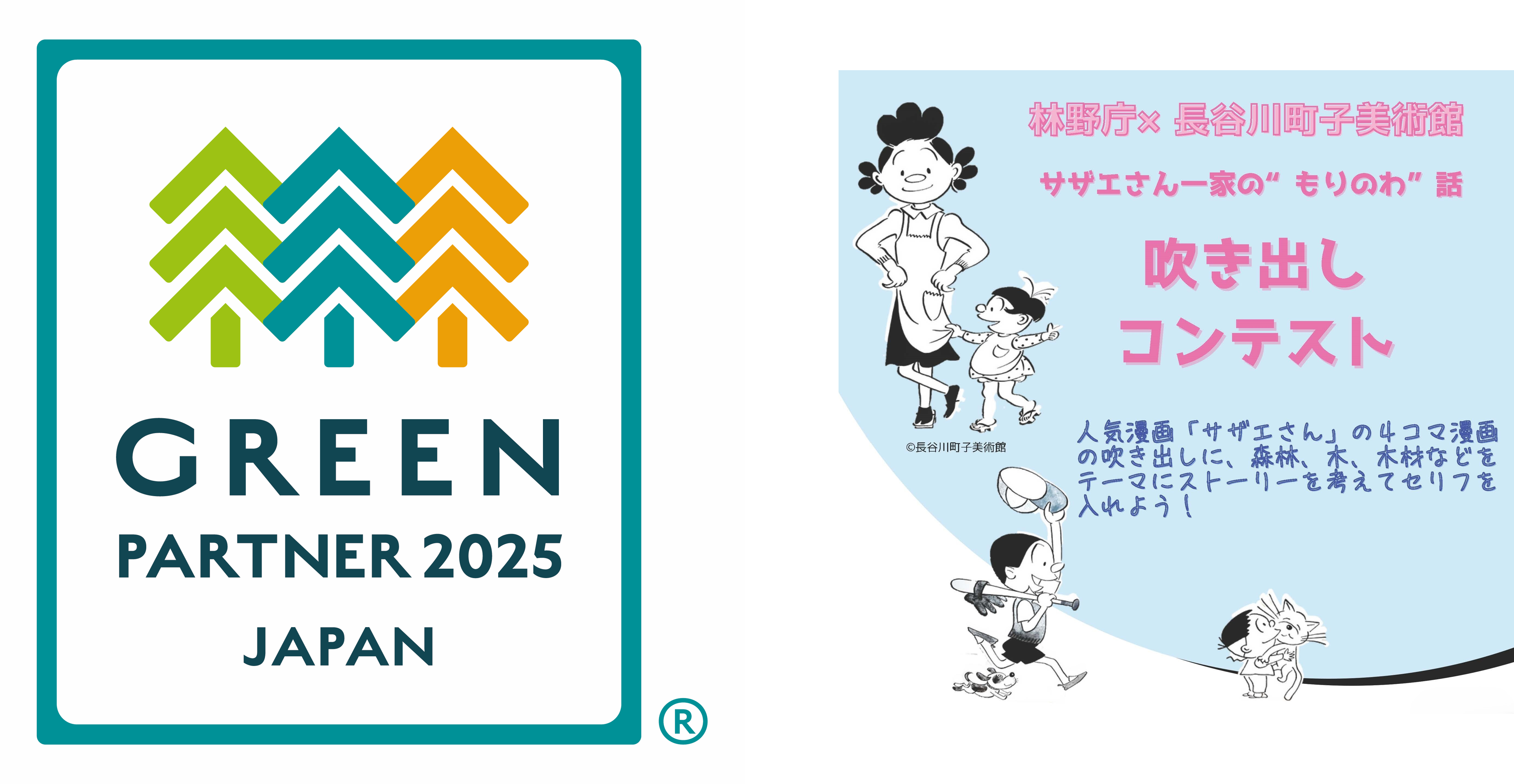 また、企業等の森林(もり)づくりの活動や森林由来J-クレジットの活用を通じて、2050年ネット・ゼロの実現等に貢献する企業などの取組を顕彰する「森林×ACTチャレンジ2025」と、「伐って、使って、植えて、育てる」森林資源の循環利用(森林(もり)の「環(わ)」)の普及啓発を目的とした「サザエさん一家の”もりのわ”話 吹き出しコンテスト」の表彰式を開催します。