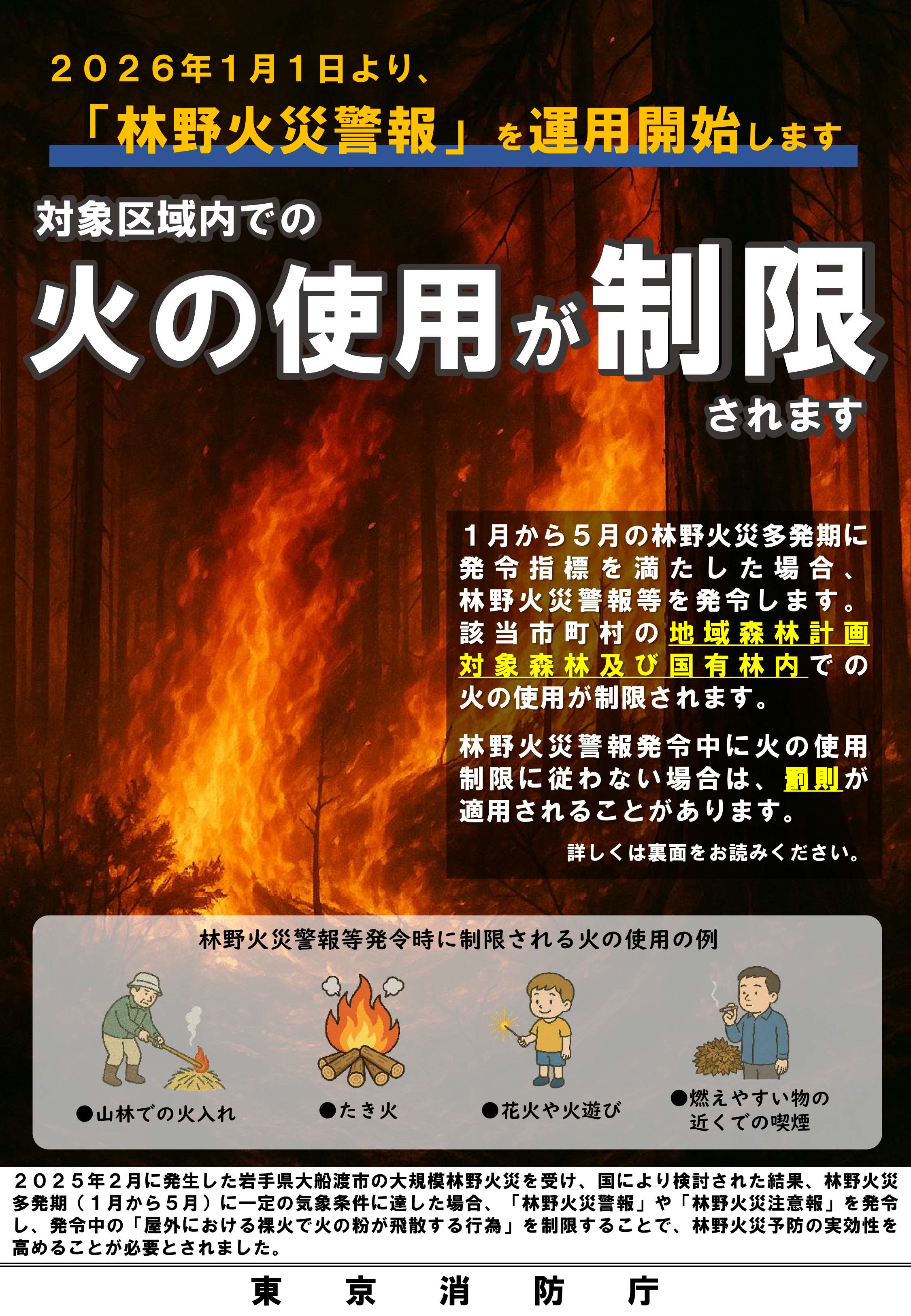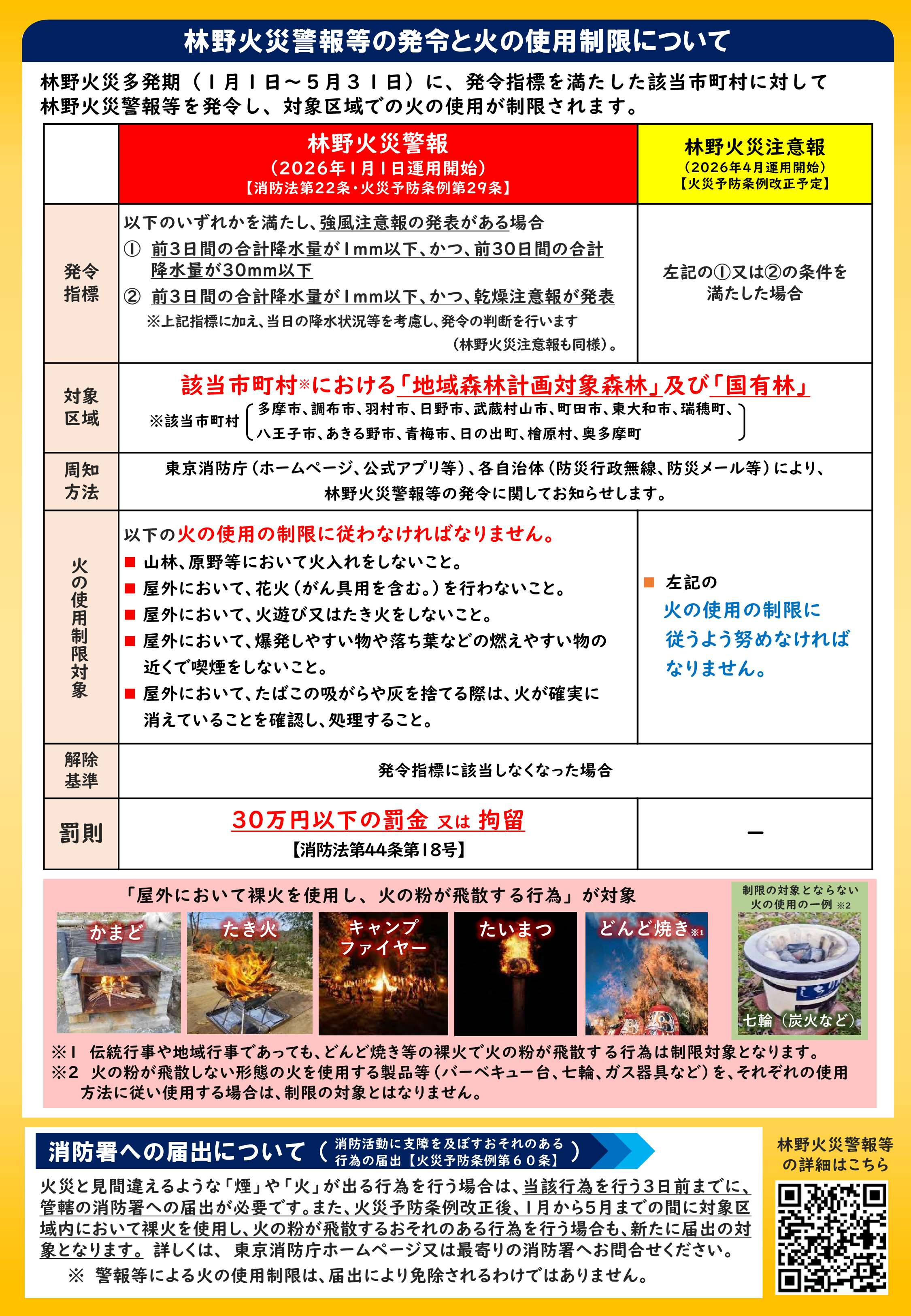 林野火災警報等の運用開始について | 東京消防庁 ↑↑東京消防庁のリンクから詳細をご確認ください↑↑ |