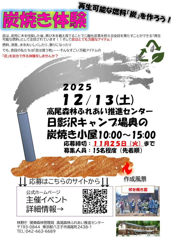 問合せ:林野庁関東森林管理局高尾森林ふれあい推進センター