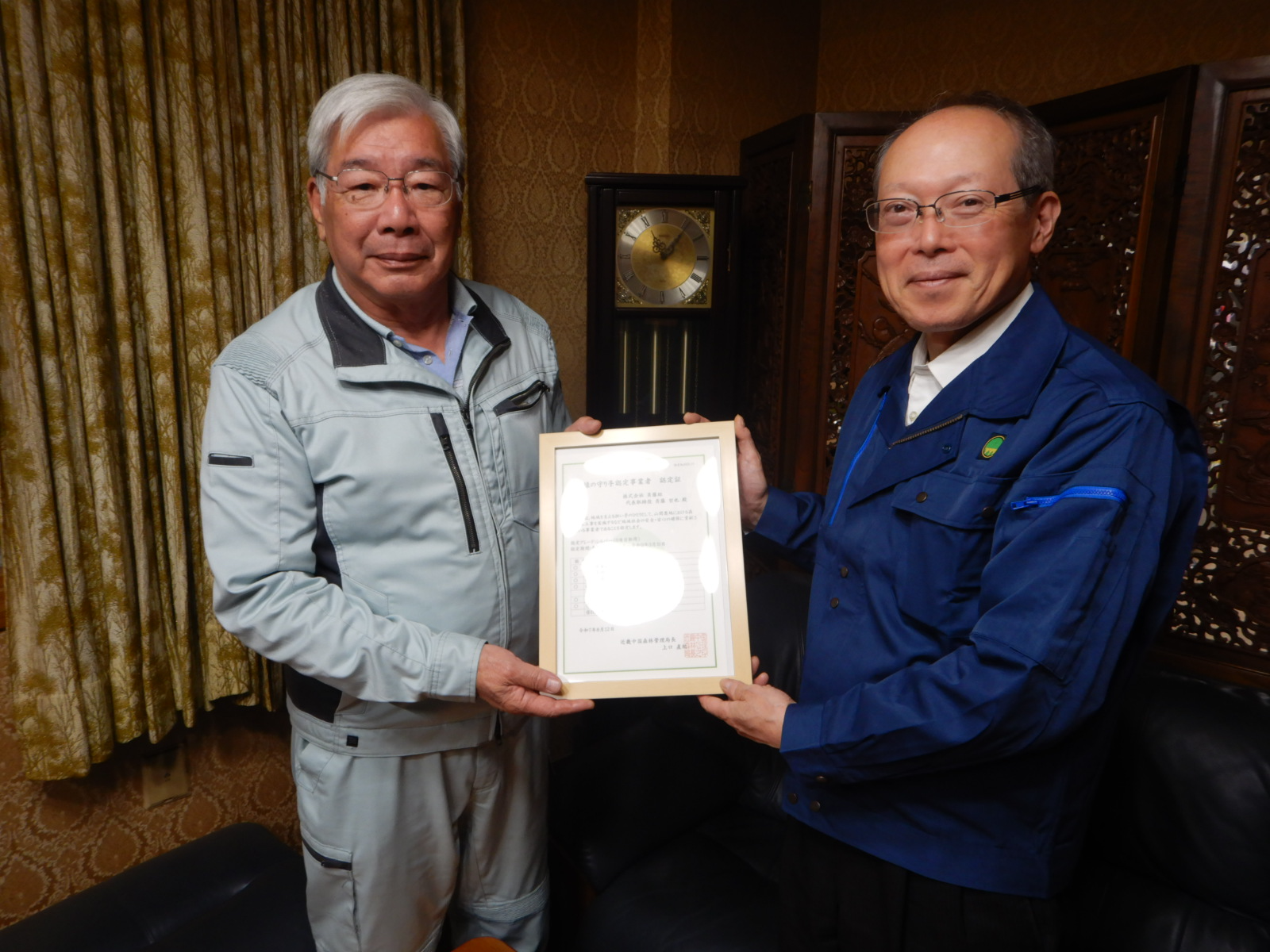 【認定証を授与 沼田建設株式会社 代表取締役 沼田 聖氏】