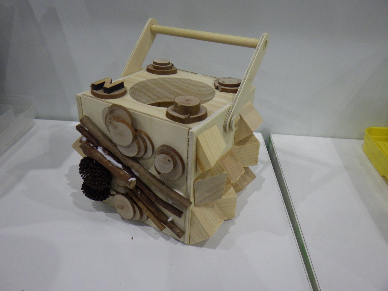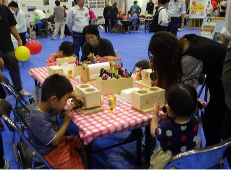 親子で木工体験の様子 |