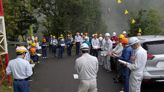 令和7年10月15日、徳島県三好市山城町の根津木・白川復旧治山工事現場にて、「森林土木事業における資材運搬工法見学会」を開催しました。