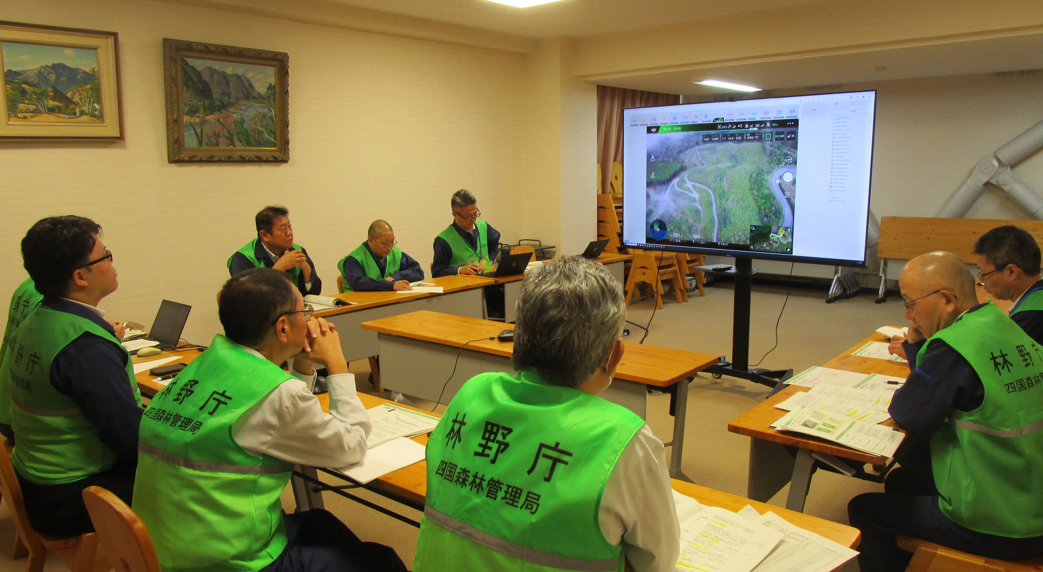 四国森林管理局では令和7年10月20日、愛媛森林管理署・嶺北森林管理署及び両署管内の関係市町村と合同で「令和7年度 ドローンを活用した山地災害時情報収集訓練」を実施しました。