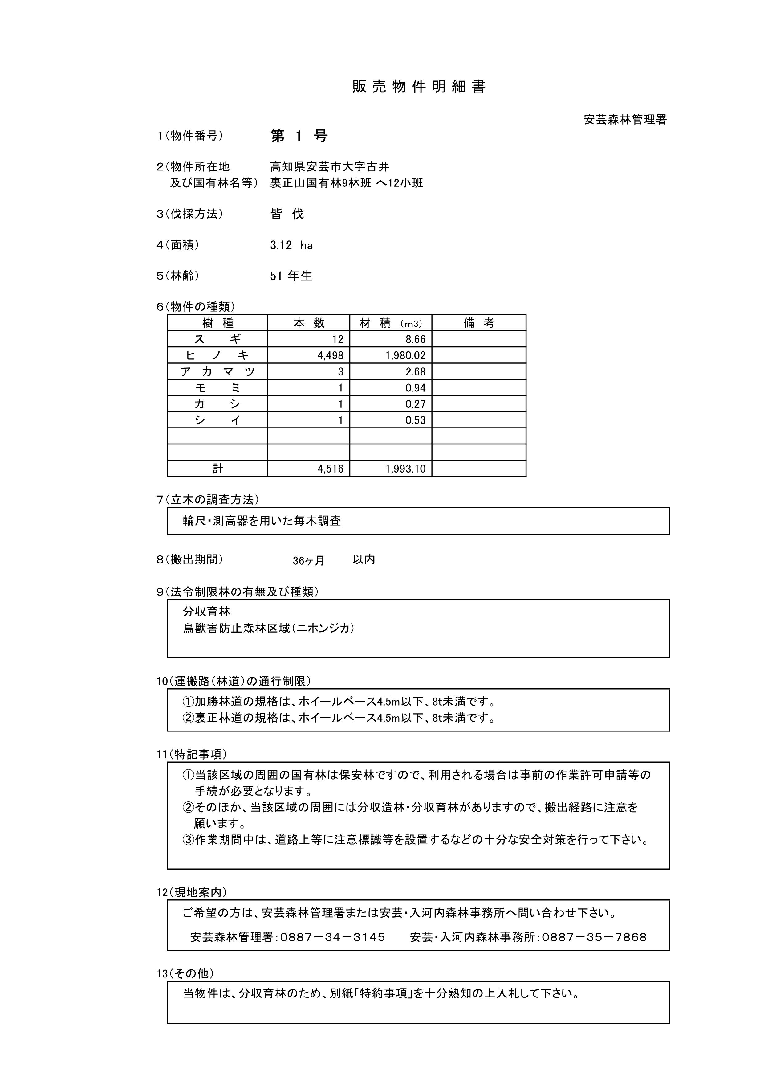 国有林野産物公売公告